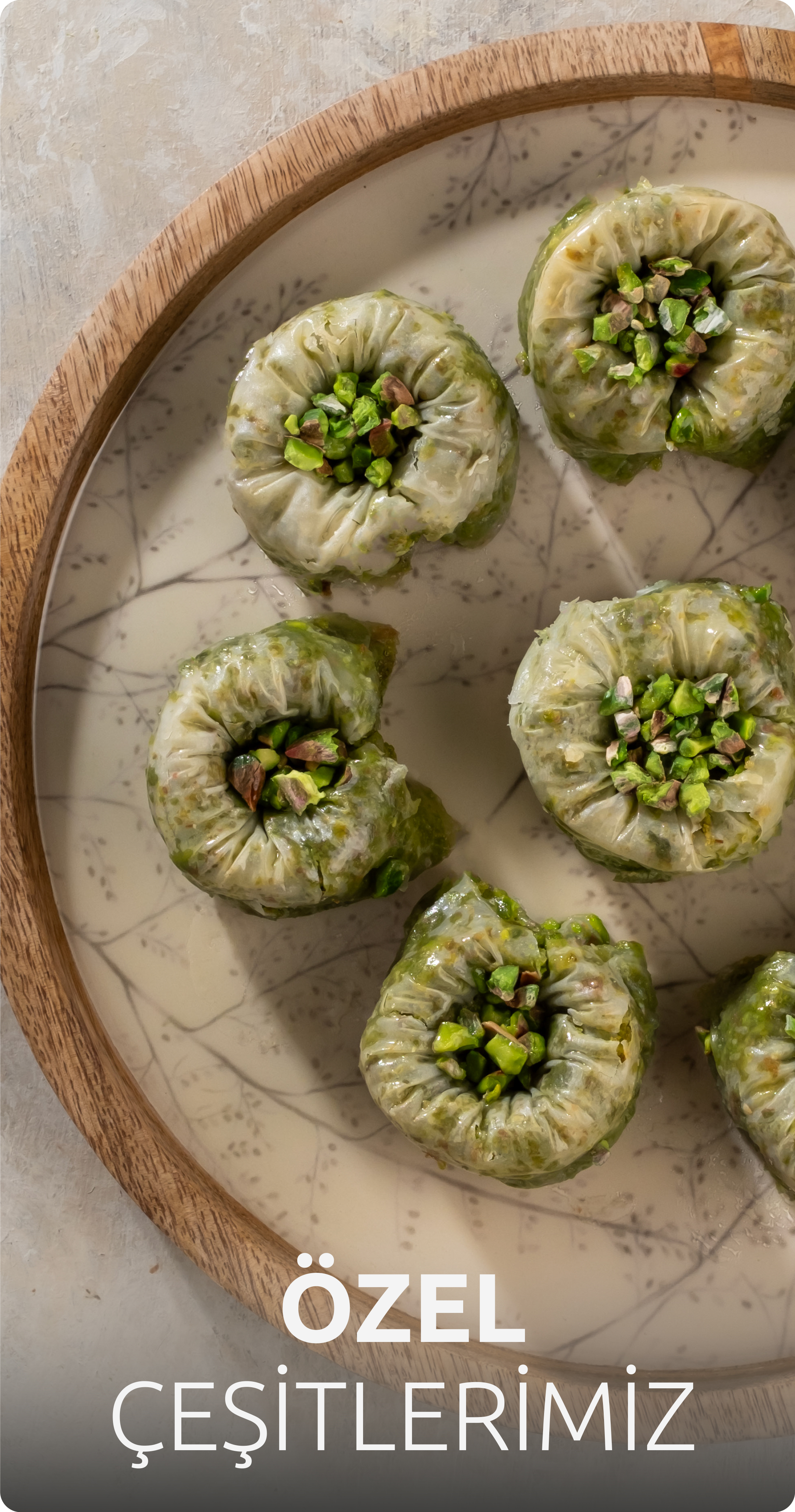 Erken hasat Antep fıstığı, saf sadeyağ ve %100 pancar şekeri ile hazırlanan; katkısız, usta ellerden gerçek baklava.