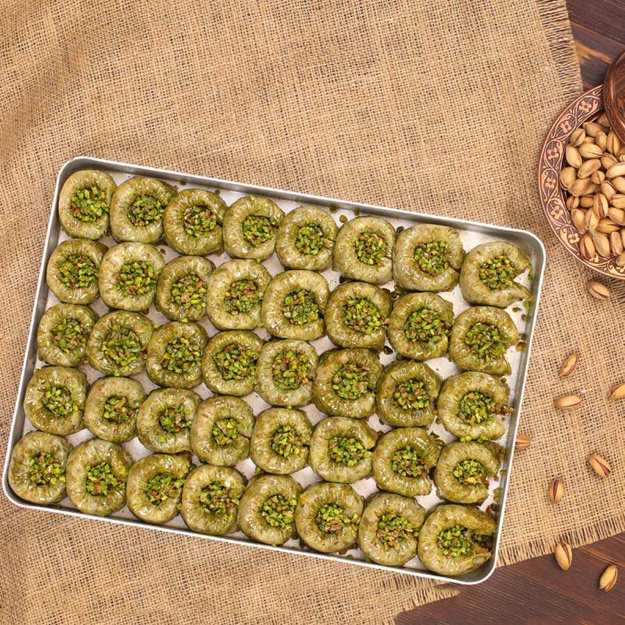 - Ortası bol Antep fıstığı: Her bir yuvanın merkezinde kullanılan cömert fıstık miktarı, tatlıya yoğun ve karakteristik bir fıstık aroması kazandırır.